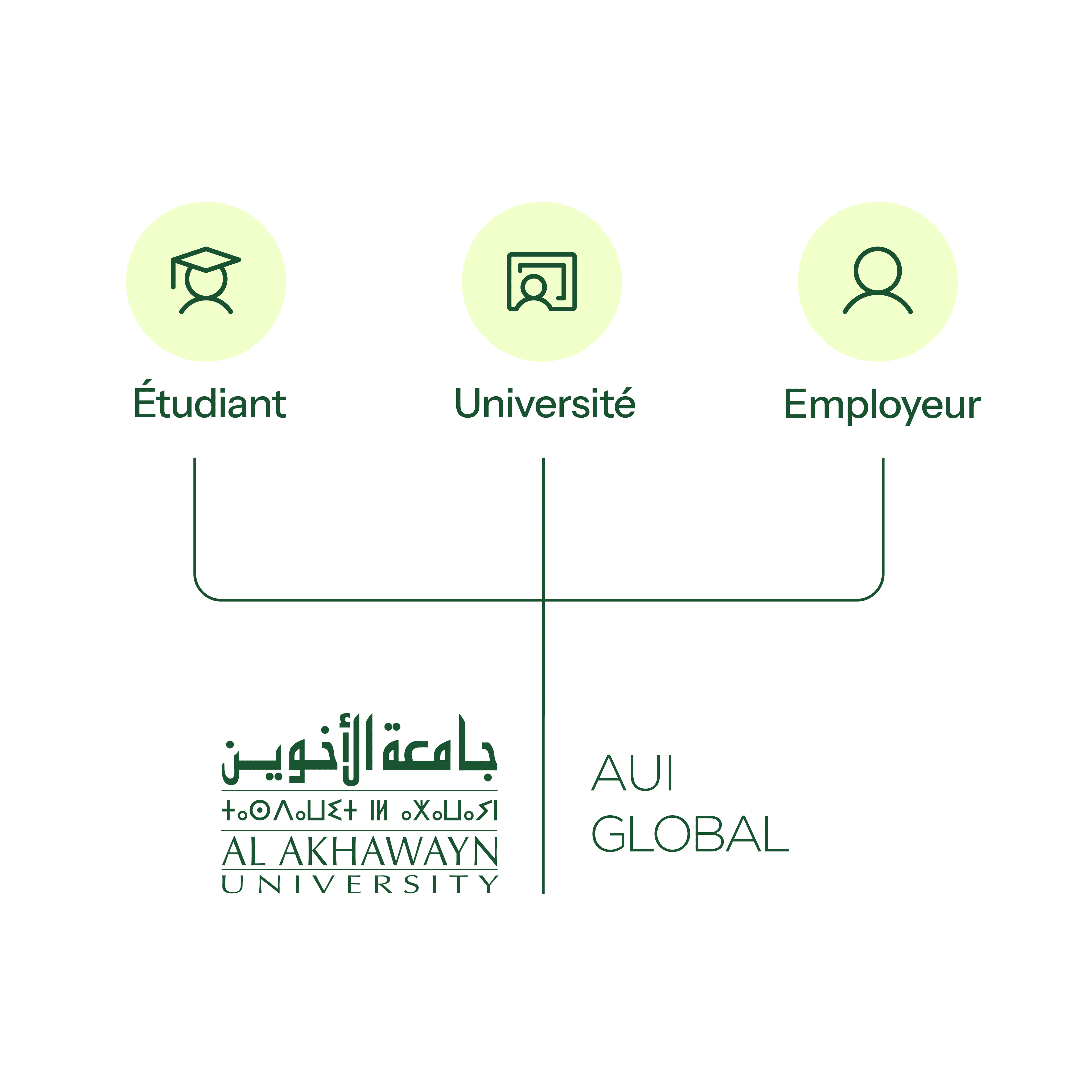 En tant que premier programme de licence hybride de haute qualité au Maroc, AUI GLOBAL établit une nouvelle référence en matière d’enseignement universitaire intégré au travail, en combinant l’excellence académique d’Al Akhawayn avec des partenariats directs avec des employeurs dans les régions et secteurs les plus dynamiques du pays.